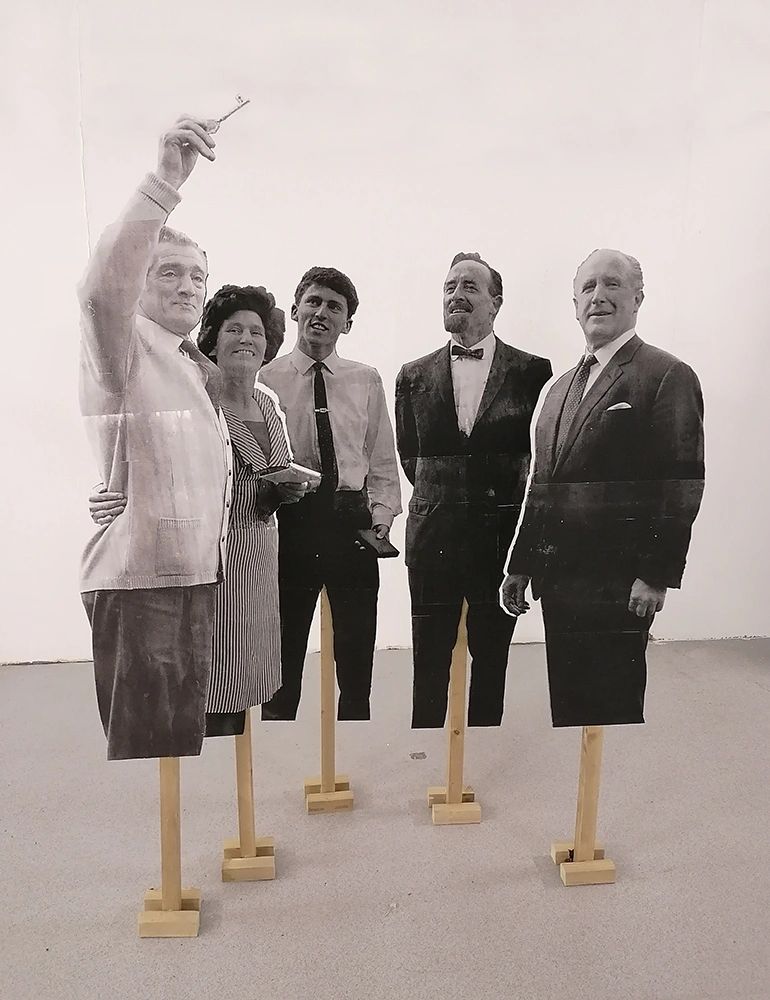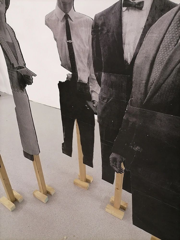 screen prints on paper on foam board, wood